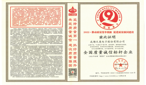 天奧電子榮獲“全國質(zhì)量誠信標(biāo)桿企業(yè)” 和“全國電子科技行業(yè)質(zhì)量領(lǐng)先企業(yè)”稱號(hào)...