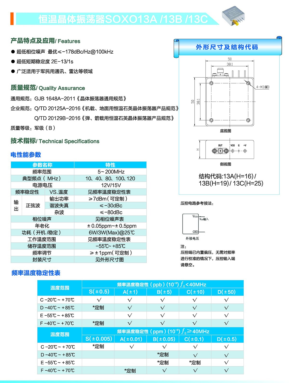恒溫晶體振蕩器SOXO13A/13B/13C