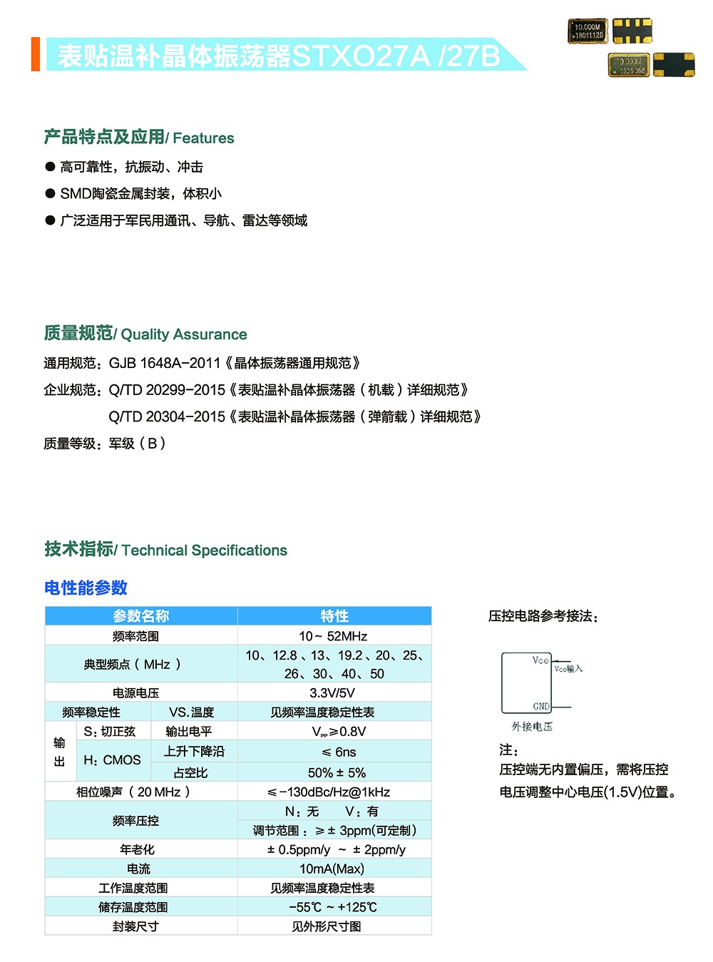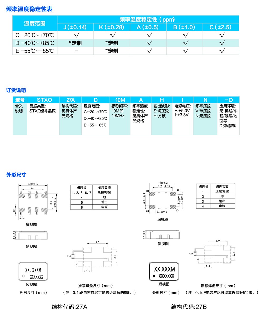 表貼溫補(bǔ)晶體振蕩器STXO27A/27B