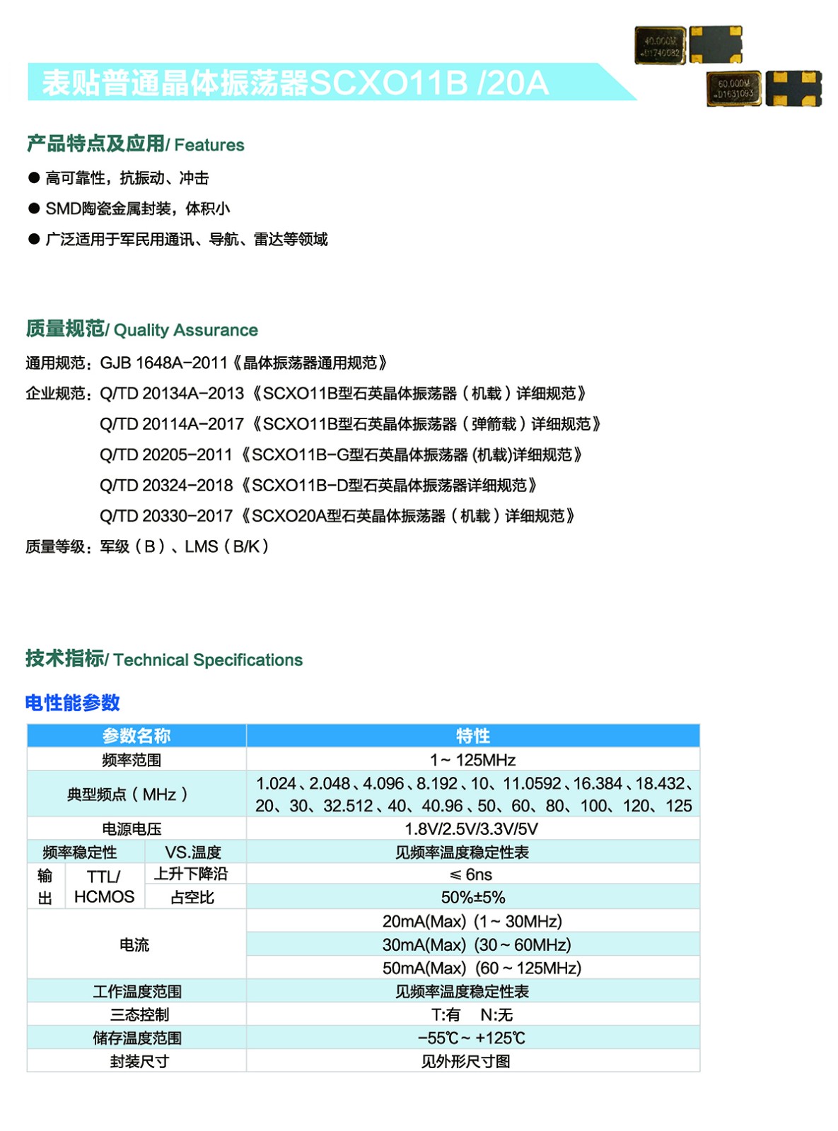 表貼晶體振蕩器SCXO11B/20A系列