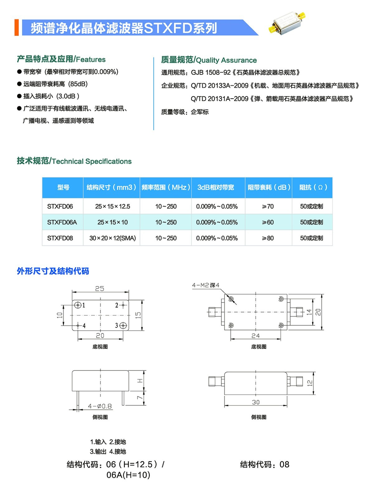 頻譜凈化晶體濾波器STXFD系列